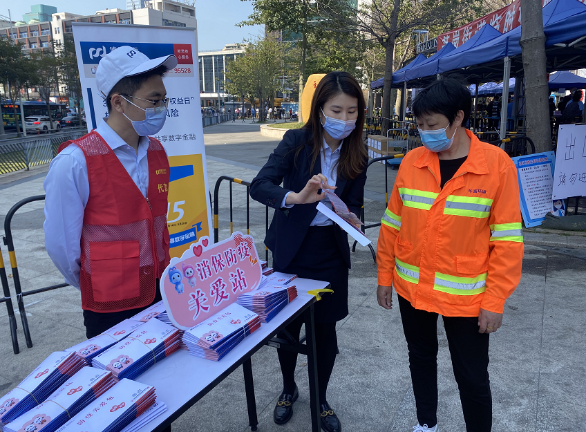在年輕人較多的片區(qū),浦發(fā)銀行的“消保代言人”們向市民們詳細介紹了資管新規(guī)的相關知識。“保障金融消費者的知情權頗為重要,我們向市民們強調(diào),必須根據(jù)自己的風險能力和風險承擔能力選擇相適應的產(chǎn)品,同時要積極關注金融機構信息披露的內(nèi)容,守好自己的錢袋子?!蓖瑫r,他們也呼吁大家多多關注身邊的特殊群體,“年輕人尤其要有一桿消費公平的稱,主動為保護特殊群體的權益貢獻更多力量”。