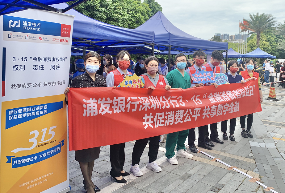 讀特客戶端 ·深圳新聞網(wǎng)2022年3月15日訊(通訊員 王曦晨)為不斷加強金融消費者保護,全力維護經(jīng)濟金融安全和消費者合法權益,增強金融消費者獲得感,值此“315”消費者權益保護教育宣傳周之際,浦發(fā)銀行深圳分行秉持“以人民為中心”的消保發(fā)展思想,陸續(xù)開展金融知識普及系列活動,切實增強廣大金融消費者的金融決策力、風險防范意識和獲得感。