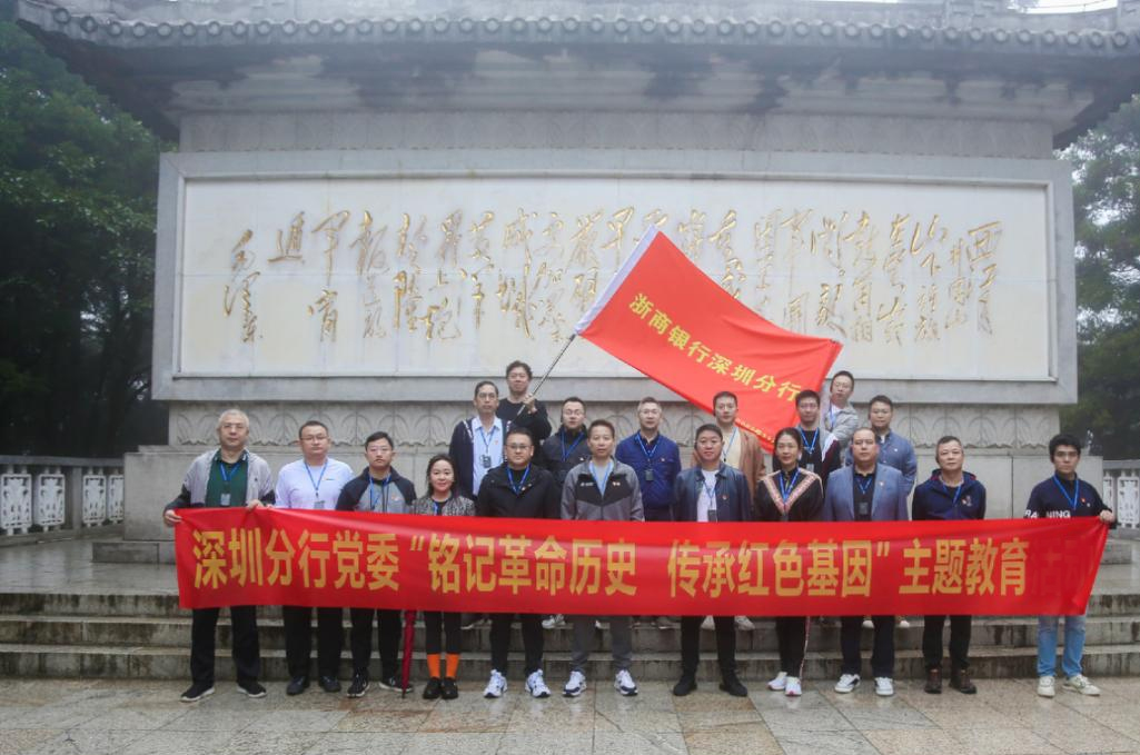 在井岡山烈士陵園,浙商銀行深圳分行黨委書記、行長樓瞿華帶領(lǐng)全體黨員向革命烈士敬獻(xiàn)了花圈并默哀。
