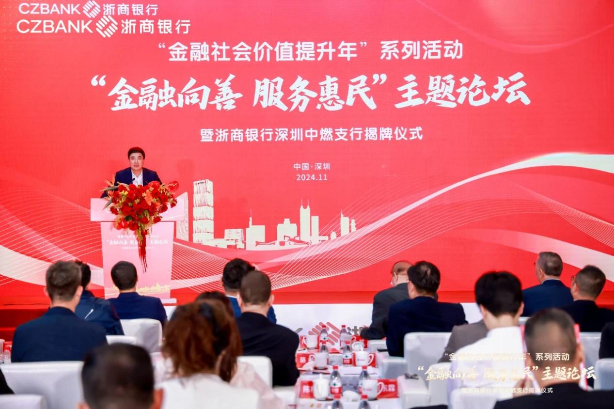 深圳新聞網(wǎng)2024年11月6日訊(記者 朱琳 通訊員 劉璇)為深入貫徹黨的二十屆三中全會和中央金融工作會議精神,11月4日,“金融向善 服務惠民”主題論壇暨浙商銀行深圳中燃支行揭牌儀式在中國燃氣大廈舉行。本次活動也是浙商銀行“金融社會價值提升年”系列活動之一。國務院發(fā)展研究中心原黨組成員、副主任余斌,中國上市公司協(xié)會會長宋志平,浙商銀行黨委書記、董事長陸建強,中國燃氣控股有限公司董事局主席劉明輝等嘉賓出席活動。