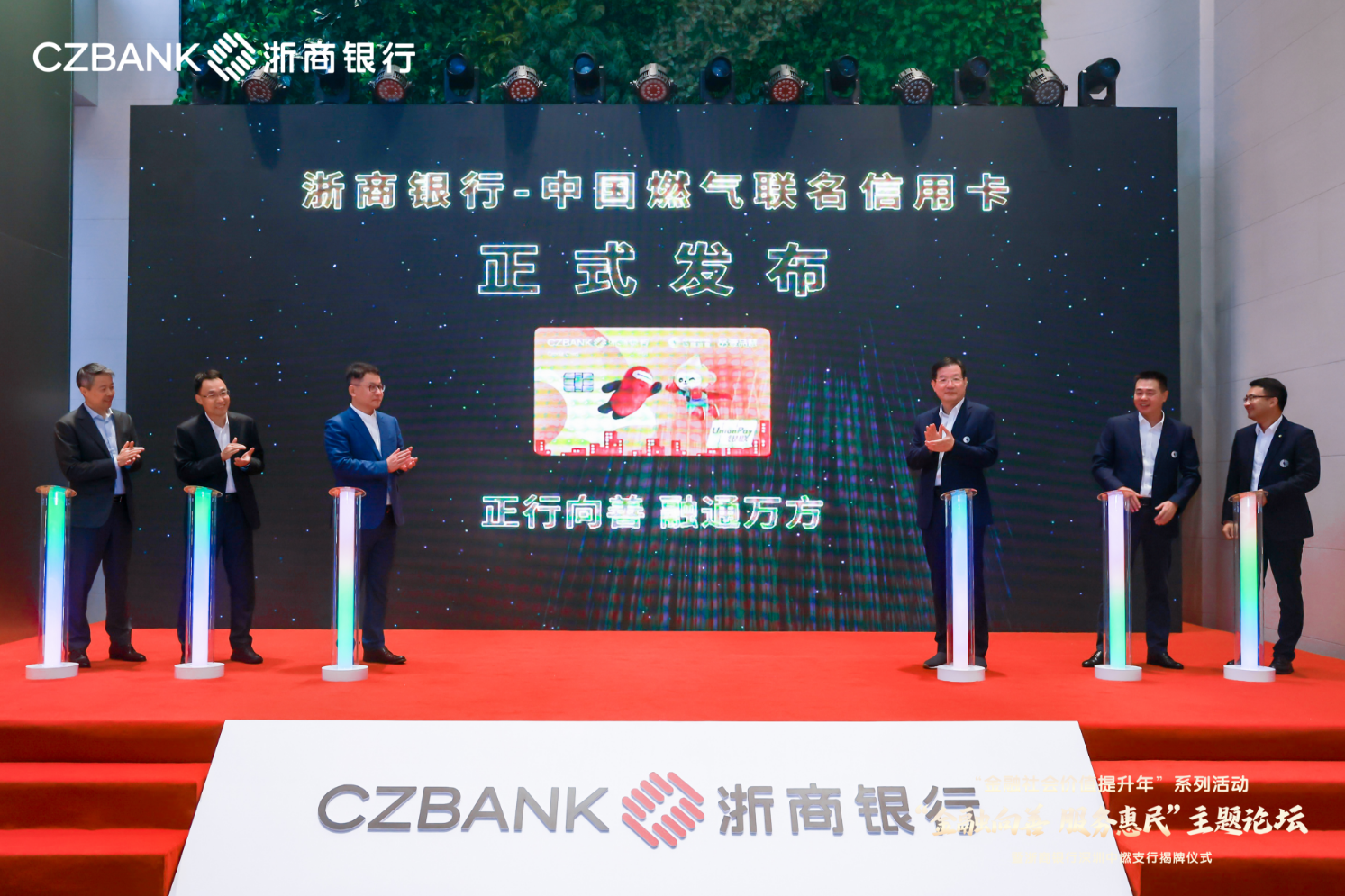 浙商銀行一直堅定看好深圳的發(fā)展,積極融入深圳經(jīng)濟社會發(fā)展大局。陸建強董事長與劉明輝主席共同為深圳中燃支行揭牌,標志著浙商銀行在深圳的第16家機構(gòu)正式投入運營。這也是浙商銀行系統(tǒng)內(nèi)第一家以服務對象命名的支行?;顒蝇F(xiàn)場還發(fā)布了“浙商銀行-中國燃氣”聯(lián)名信用卡。北京高占祥文化藝術(shù)基金會還授予浙商銀行深圳分行慈善公益合作機構(gòu)稱號。