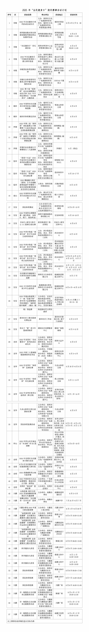 2025年8月8日是我國(guó)第17個(gè)“全民健身日”。今年,深圳迎來(lái)了第十五屆全國(guó)運(yùn)動(dòng)會(huì)和殘?zhí)貖W會(huì),為積極響應(yīng)“全民全運(yùn),全運(yùn)惠民”的理念,深圳在“全民健身日”期間精心組織了57項(xiàng)群眾喜聞樂(lè)見(jiàn)的賽事活動(dòng),涵蓋球類、徒步、騎行、水上等多個(gè)項(xiàng)目,139家體育場(chǎng)館面向市民免費(fèi)或優(yōu)惠開(kāi)放,降低運(yùn)動(dòng)門(mén)檻,惠及更多市民。