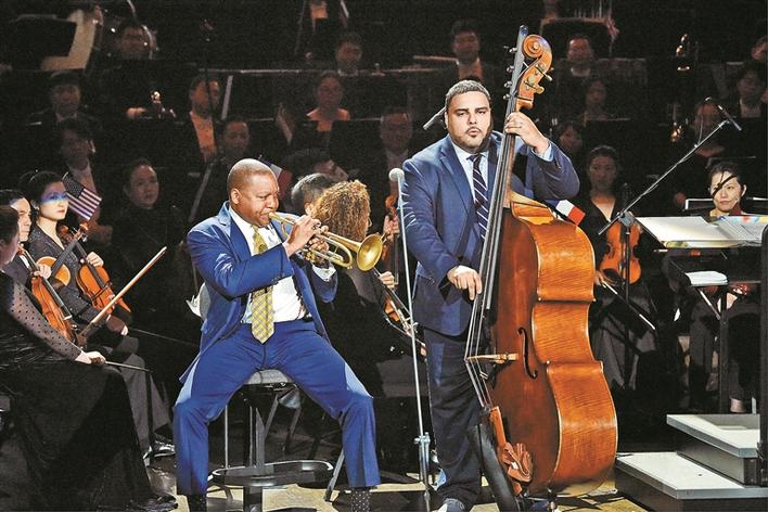 作為開場(chǎng)演出嘉賓,爵士樂小號(hào)巨星溫頓·馬薩利斯醇熟而自得的演奏,在音色、技巧、音樂及個(gè)性上表現(xiàn)出了獨(dú)樹一幟的和諧與完美,他與卡洛斯·亨瑞奎的即興表演,瞬間點(diǎn)燃了觀眾的熱情。這位九次格萊美獎(jiǎng)得主首次亮相“音樂季”,便收獲了深圳觀眾極大的喜愛。他表示,深圳很像他的家鄉(xiāng),年輕而富有活力,“這是一座很現(xiàn)代化的城市,我能感受到它的生命力”。溫頓·馬薩利斯多次來華,中國觀眾對(duì)爵士樂的理解和認(rèn)同讓他十分感動(dòng)。