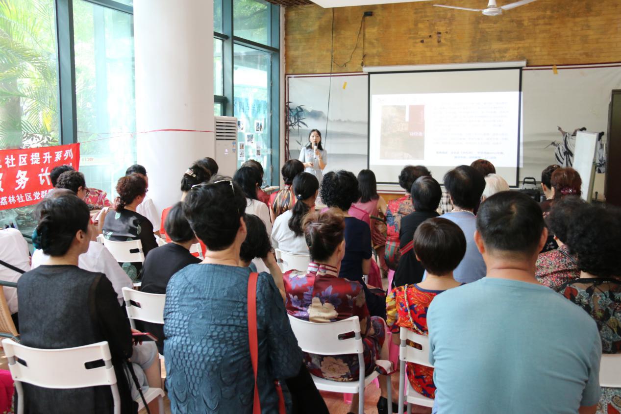 “綠草蒼蒼,白霧茫茫,有位佳人,在水一方。綠草萋萋,白霧迷離,有位佳人,靠水而居......”講座開始,邵洋吟唱起鄧麗君的《在水一方》,引得居民朋友輕聲相和,歌聲悠遠(yuǎn)而綿長(zhǎng)。