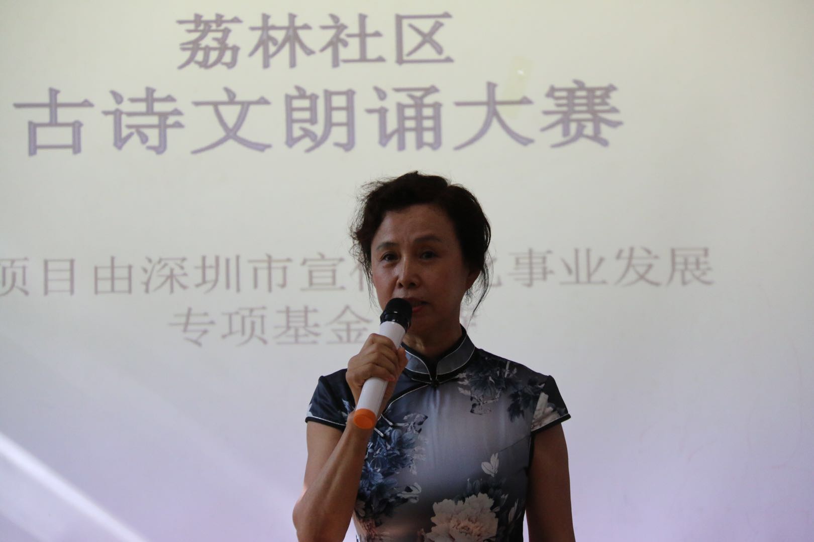 深圳新聞網(wǎng)訊 5月18日下午,由深圳市宣傳文化事業(yè)發(fā)展專 項(xiàng)基金支持的“新時(shí)代中華優(yōu)秀傳統(tǒng)文化進(jìn)社區(qū)”項(xiàng)目第三場(chǎng)活動(dòng)“古詩(shī)詞朗誦大賽”在南山區(qū)南山街道荔林社區(qū)黨群活動(dòng)中心一樓多功能廳拉開(kāi)帷幕。本次活動(dòng)由深圳市壹書文化傳播有限責(zé)任公司主辦,荔林社區(qū)協(xié)辦。炎炎夏日阻擋不了居民朋友們的熱情,他們?cè)缭绲貋?lái)到了活動(dòng)現(xiàn)場(chǎng),對(duì)本次比賽充滿了熱切的期待。