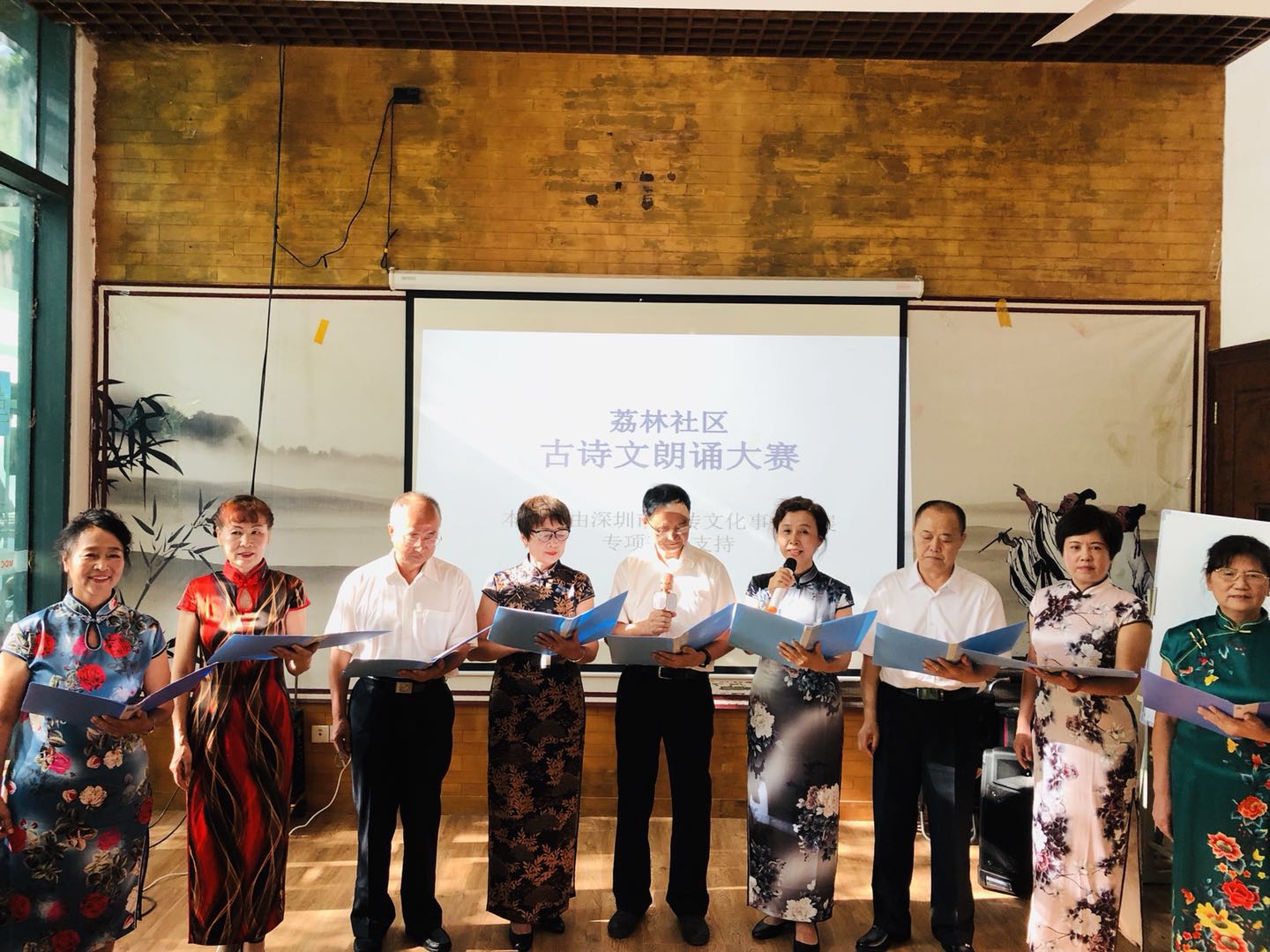 來(lái)自荔林社區(qū)的13位參賽選手參加了本次朗誦大賽,他們朗誦的作品都是家喻戶曉的千古名篇,獲得了社區(qū)居民的真摯喜愛(ài),活動(dòng)現(xiàn)場(chǎng)掌聲與喝彩聲經(jīng)久不息。整場(chǎng)朗誦大賽內(nèi)容豐富、情感深摯,引人入勝。既有飽含深摯情感的《無(wú)題》、訴說(shuō)人世間悲歡離合的《水調(diào)歌頭》、凄楚而不無(wú)激越的《虞美人》,也有蕩氣回腸的《臨江仙》、氣勢(shì)磅礴的《滿江紅》和氣概豪邁的《觀獵》。而《望月懷遠(yuǎn)》、《登金陵鳳凰臺(tái)》、《春夜喜雨》、《望岳》又將大家?guī)Щ亓耸⑻?,用朗誦的聲音讓我們與盛唐的詩(shī)人進(jìn)行了一場(chǎng)跨時(shí)空的交流。《陌上?!贰ⅰ洞航ㄔ乱埂放c《釵頭鳳》參賽選手朗誦情深意切,深深地感染了在場(chǎng)的觀眾,贏得了大家的一致好評(píng)!