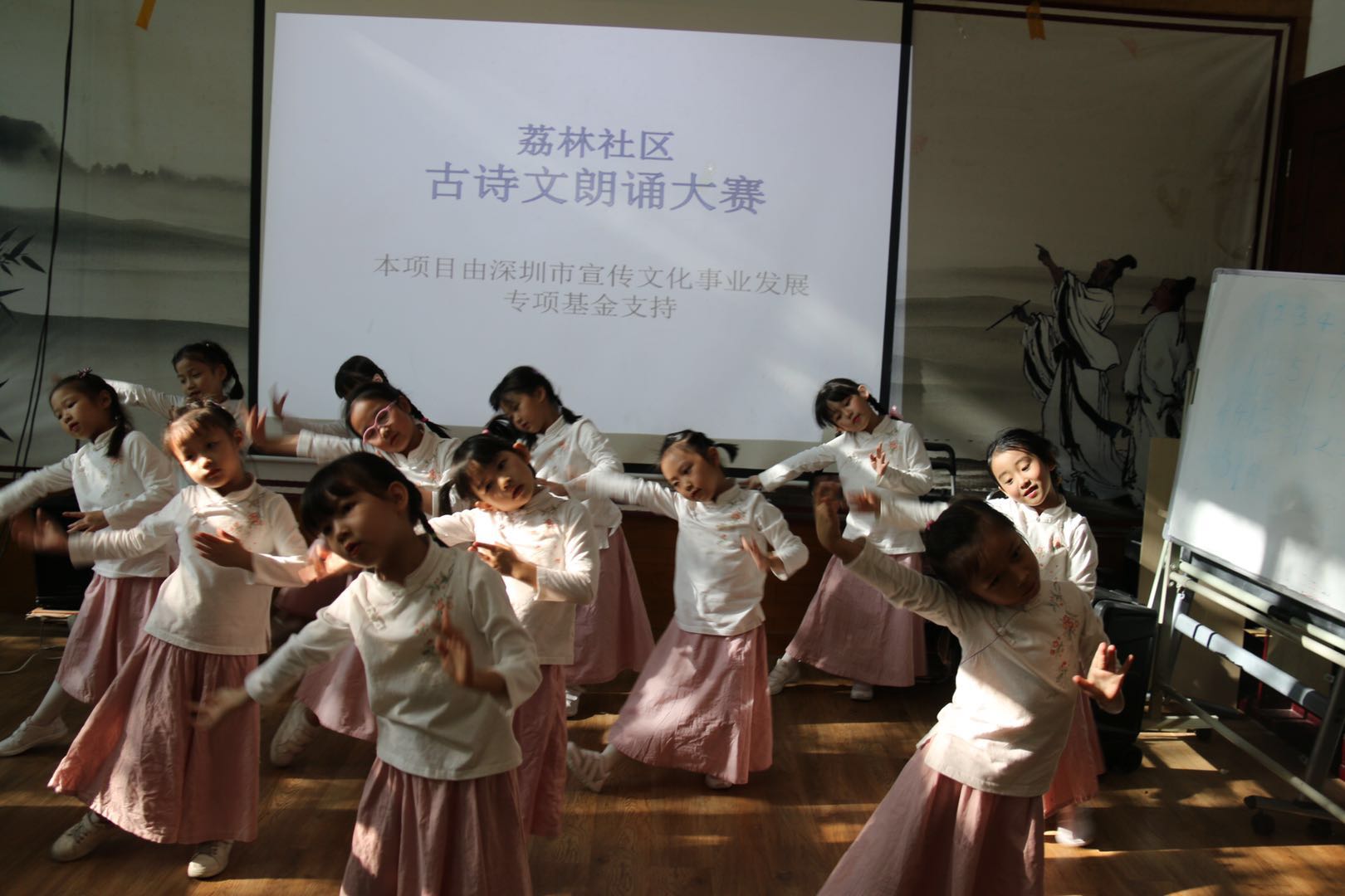 比賽結(jié)束后,荔林社區(qū)歡樂(lè)頌朗誦隊(duì)為大家?guī)?lái)了他們自行創(chuàng)作的《唐詩(shī)里的中國(guó)》,引發(fā)現(xiàn)場(chǎng)觀眾的熱烈掌聲。而城市山林幼兒園小朋友在老師的帶領(lǐng)下為大家?guī)?lái)了舞蹈表演《百善孝為先》,小朋友們可愛(ài)的舞姿引起了觀眾的陣陣喝彩。最后,評(píng)委們?yōu)楂@獎(jiǎng)的選手頒發(fā)了獎(jiǎng)杯,本次比賽也在社區(qū)居民的依依不舍中圓滿結(jié)束。