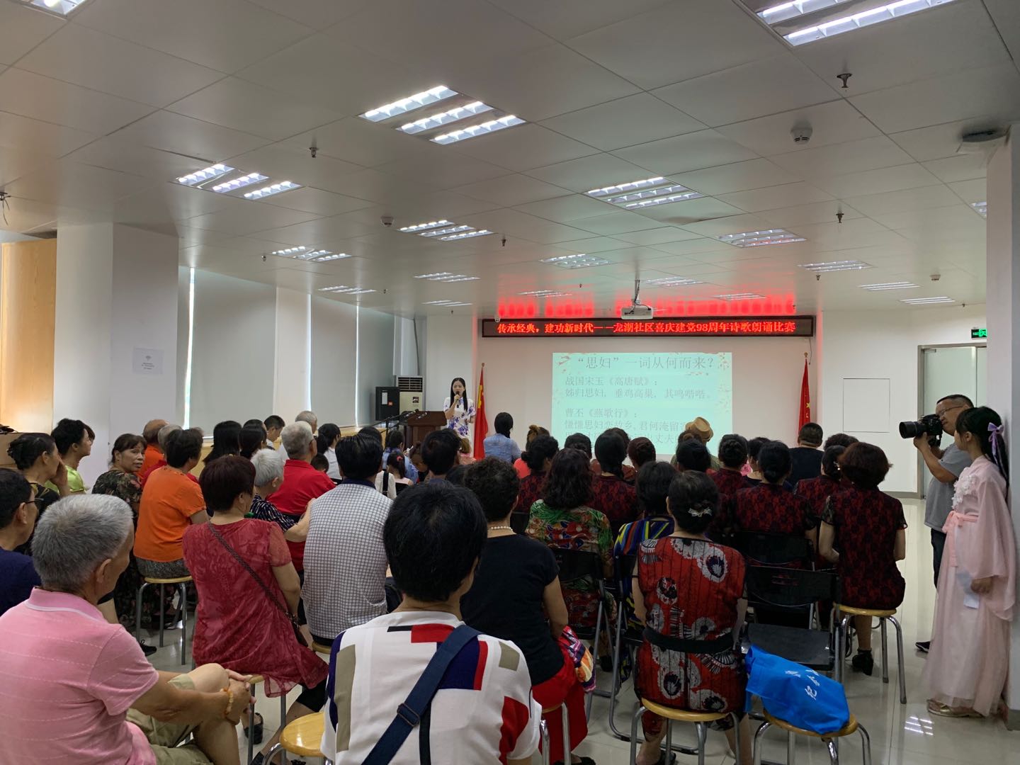 講座開始前,龍湖社區(qū)古詩新韻班的學(xué)員傾情奉上國學(xué)經(jīng)典新學(xué)堂歌——《游子吟》,為本次活動(dòng)拉開了序幕。接著,龍湖社區(qū)的羅黎靜書記深情致辭,為“新時(shí)代中華優(yōu)秀傳統(tǒng)文化”項(xiàng)目走進(jìn)社區(qū)表示榮幸和歡迎,“人生自有詩意,詩意美在四季。今天來到現(xiàn)場的每一個(gè)人都心中有愛,腹中有詩,對生命有著詩一般的向往和追求”,喚醒生命中的詩意,活動(dòng)的意義也在于此。