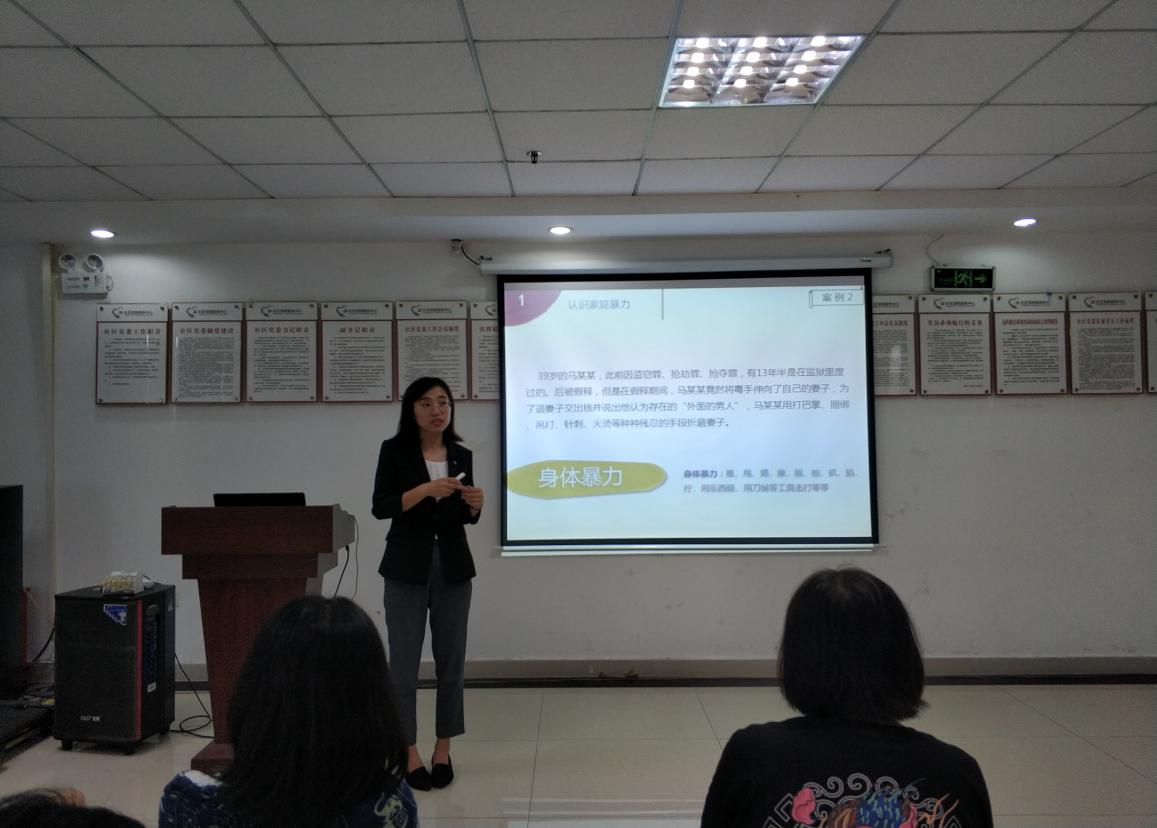 活動(dòng)現(xiàn)場(chǎng),維德法律服務(wù)中心志愿律師劉秀為大家講授以“要愛不要傷害”為主題的反家暴講座。她以當(dāng)下反家暴的熱點(diǎn)與經(jīng)典案例為切入點(diǎn),就如何維護(hù)女性在婚姻家庭中的權(quán)益問題與居民和社工展開深入探討。值得一提的是,劉律師還與社區(qū)工作人員一起,以親身體驗(yàn)的方式,復(fù)刻了現(xiàn)實(shí)生活中的法律咨詢現(xiàn)場(chǎng)。