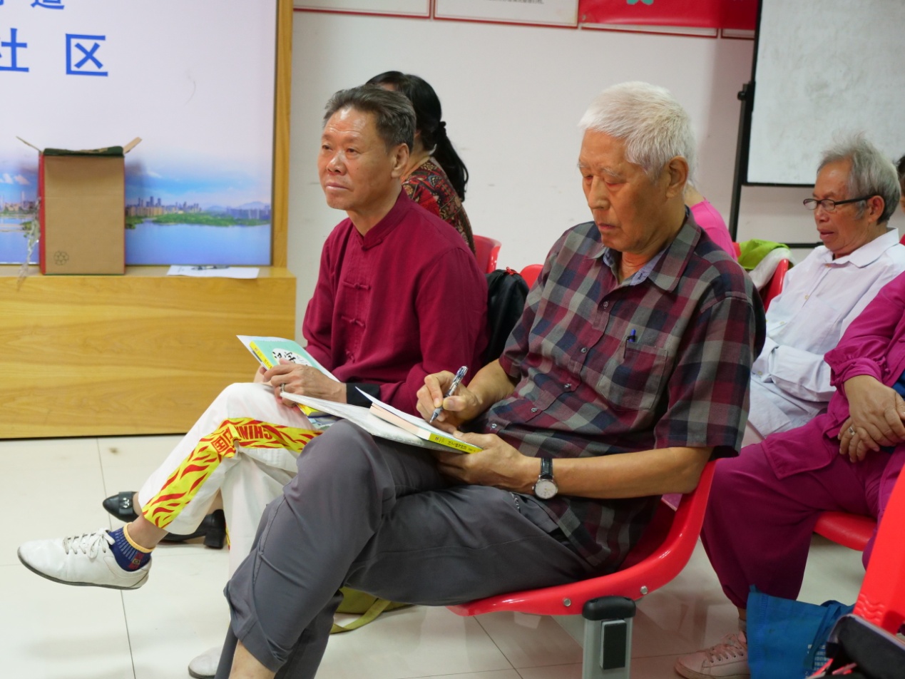 活動現場,珠光社區(qū)的叔叔阿姨們坐得整整齊齊,人手一本《深圳市民公約》冊子和《漢字與修身智慧》學習資料,認真地翻閱著。