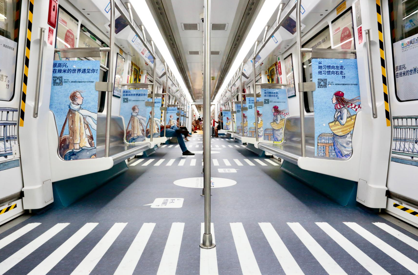 “我信仰藝術(shù),我覺(jué)得它太……太厲害了!”因?yàn)橄M阉囆g(shù)的美好分享給所有人,幾米創(chuàng)作時(shí)總是盡量把自己最在乎的故事和結(jié)構(gòu)變得更簡(jiǎn)單些,打破國(guó)界,讓全世界的讀者和畫(huà)迷都能在他的故事里找到共鳴與寄托。為了更好地傳遞這種藝術(shù)體驗(yàn),本次藝術(shù)計(jì)劃還讓幾米筆下的人物走進(jìn)地鐵車廂和站廳,等待人們的不期而遇。觀眾在列車或站點(diǎn)打卡拍照,參與“在幾米的世界遇見(jiàn)你”征集活動(dòng),就有機(jī)會(huì)獲得“目的地美術(shù)館”限量版幾米明信片和環(huán)保袋。