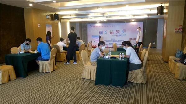 比賽分為線上預(yù)賽和線下決賽兩部分,經(jīng)過8月14和15日兩天五輪的激烈爭(zhēng)奪,張文浩、王辰兮、黎鶴群(女),陽(yáng)柏林、李冰、肖耀希、陳志、李明達(dá)八名選手脫穎而出,獲得線下決賽入場(chǎng)券。8月16日線下決賽,單敗淘汰制,容不得半點(diǎn)閃失,高手相爭(zhēng),凝神靜氣,你來我往。賽場(chǎng)內(nèi)靜寂無聲,棋盤上廝殺火熱。