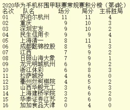 見圳客戶端?深圳新聞網(wǎng)2020年8月27日訊(記者周錦春)今日,2020“華為手機杯”中國圍棋甲級聯(lián)賽第四輪繼續(xù)在浙江長興進行,深圳宏發(fā)隊以3比1大勝上屆亞軍龍元明城杭州隊,目前積9分,在積分榜上與重慶隊、民生信用卡隊并列第二名。本輪亮點:戎毅威風(fēng)四連勝!時越持續(xù)低迷。
