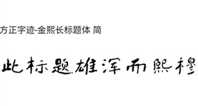 金熙長先生曾在深圳圖書館工作十多年,一直致力于中華傳統(tǒng)文化的修習,于古琴、古音韻、古詩詞、古曲及道教科儀與音樂等方面用功亦勤,又以《中國文字學》、《平面設計》、《藝術美學》等相關交叉與邊緣學科為創(chuàng)作依據(jù),故他可以真陽書風寫仙家書法、以沖和靜穆書風寫佛教經典…此外,具有著極大量書法的千錘百煉的同時,金熙長先生更具有著豐富的為商號題寫招牌的經驗,所以深諳作為新一代標題體,一篇題目,一個招牌中,如果每個字都用厚重的寫法放在一行往往會呆板,反之,又會浮躁輕飄。故本字體中,以厚重端莊而又突出“高古與風骨“的北碑書風為主調,間隔一些活力四射的,突出“風華”的晉帖寫法。《方正字跡-金熙長標題體》整體看上去動中有靜,雄渾中有飄逸,極具文化內涵,未來,在廣告、產品包裝、招牌等廣泛應用場景中均可實現(xiàn)出眾的、極好的視覺效果。