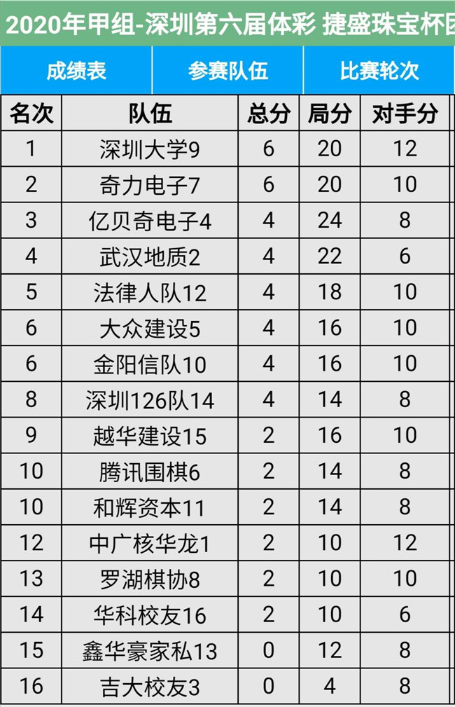 深圳市圍棋聯(lián)賽以其獨(dú)特的25D賽制,新穎的團(tuán)體對(duì)抗形式,旗鼓相當(dāng)?shù)膶?shí)力比拼,而深受?chē)鍚?ài)好者的喜愛(ài),已然成為每年一度的市圍棋愛(ài)好者的盛會(huì)。本屆聯(lián)賽共有28支隊(duì)伍參賽,每支隊(duì)伍12人,領(lǐng)隊(duì)和教練各一至兩人,今年參賽人數(shù)約四百多人。其中,超級(jí)隊(duì)12支,進(jìn)行11輪單循環(huán)比賽,甲級(jí)隊(duì)16支進(jìn)行11輪積分循環(huán)賽。具體賽程安排是:今日開(kāi)賽后,連續(xù)四個(gè)周日,每周3場(chǎng)比賽,計(jì)劃在11月22日完成比賽。本屆比賽12支超級(jí)隊(duì)是:盛榮模具、東方薈隊(duì)、吉大隊(duì)、小明日酒、萬(wàn)景華隊(duì)、俊城建設(shè)、鹽田棋協(xié)、瑞珂瑪隊(duì)、兒童棋院、愛(ài)博科技、大華稅務(wù)、報(bào)業(yè)青春。16支甲級(jí)隊(duì)是:中廣核華龍、武漢地質(zhì)、吉大校友、億貝奇電子、大眾建設(shè)、騰訊圍棋、奇力電子、羅湖圍棋、深圳大學(xué)、金陽(yáng)信隊(duì)、和輝資本、法律人隊(duì)、鑫華豪家私、深圳126隊(duì)、越華建設(shè)、華科校友。大家濟(jì)濟(jì)一堂,通過(guò)手談增進(jìn)友誼,提高棋藝。本屆比賽超級(jí)組與甲級(jí)組實(shí)行升降制,將通過(guò)四個(gè)周日的比賽,分別決出前六名和三支升降的隊(duì)伍。