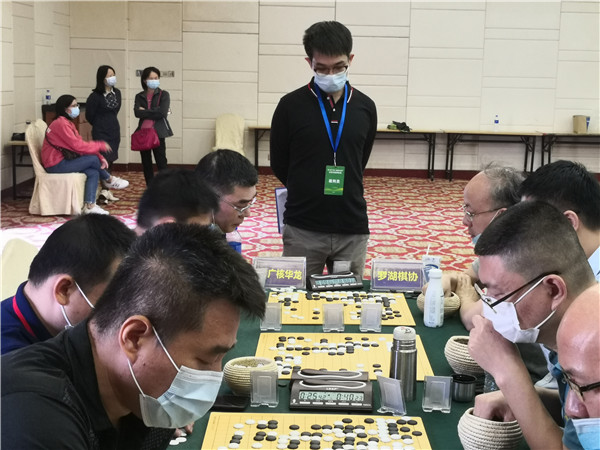 本屆聯(lián)賽在仍在抗疫的形勢下來之不易,賽事組委會非常珍惜,在防疫方面下了一番功夫。本次賽事執(zhí)行主任、著名國手梁偉棠九段介紹說:組委會在本次賽事《補(bǔ)充規(guī)定》中要求“本屆賽事因?yàn)橐咔榉揽匦枰?,全體人員必須佩戴口罩,掃碼入場,并全程不得摘下口罩;體溫過高者謝絕入場”。記者觀察到,現(xiàn)場的防疫落實(shí)還是比較到位的,一是在賽場入口布置了三人團(tuán)隊(duì),加強(qiáng)了掃碼、體溫檢測、提醒大家戴口罩,凡是入場的隊(duì)員、工作人員以及觀戰(zhàn)的圍棋愛好者,都必須進(jìn)行體溫檢測,符合正常體溫的方可入場參賽;二是要求參賽隊(duì)員和工作人員戴口罩;三是加強(qiáng)賽場巡查,對沒有自覺戴口罩的在場人員進(jìn)行勸導(dǎo)。總體來說,賽場防疫秩序良好。