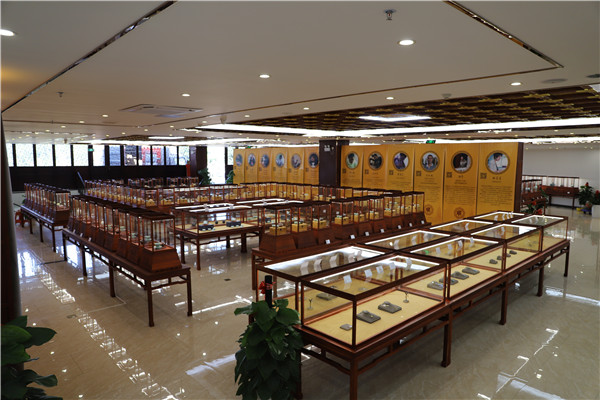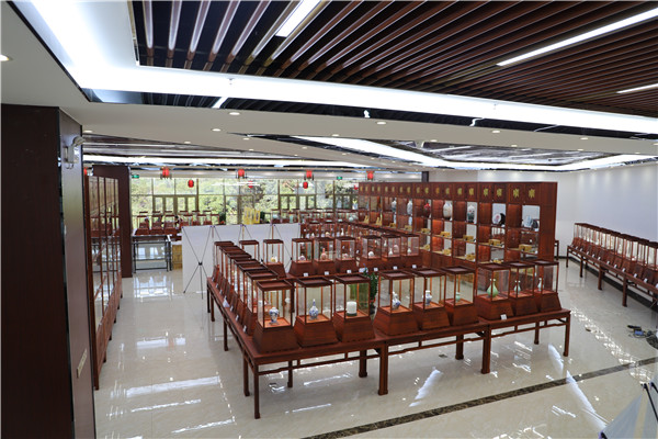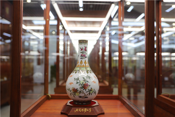 值得重點介紹的是,在珍品陳列區(qū),有不少原全國人大常委會副委員長李鐵映同志親自創(chuàng)作的工藝美術(shù)品。一是“鐵映十八式紫砂”,是李鐵映先生自身藝術(shù)文化修養(yǎng)的結(jié)晶。他以青銅、古玉等重器國寶為模,以詩詞、文論為識,以宜興獨有的紫砂材質(zhì)和豐富的工藝手段,吸取中國各種傳統(tǒng)工藝的特點,創(chuàng)意了具有民族特色的簡潔古雅的紫砂新藝術(shù),精妙構(gòu)思,博觀約取,歷數(shù)年制成。2010年元月,李鐵映先生將“鐵映十八式紫砂” 捐贈一套給國家博物館。二是限量仿制清宮琺瑯彩瓷。琺瑯彩瓷創(chuàng)燒于康熙,興盛于雍正、乾隆兩朝,之后便沉潛史海,難覓芳蹤。李鐵映先生得知后,高度重視,數(shù)度深入相關(guān)博物館和景德鎮(zhèn)院校、企業(yè)調(diào)研,組織成立“紫玄琺瑯瓷研究室”,確立了“發(fā)掘保護(hù)、繼承發(fā)展”的指導(dǎo)思想,提出“仿古不泥古,仿清更超清”仿制要求,經(jīng)過成百上千次的反復(fù)試驗,最終成品,既具有清代康雍乾琺瑯彩瓷的藝術(shù)品味和精神風(fēng)貌,但在材質(zhì)、工藝、技術(shù)等方面有所超越,可以說,每件作品都能集工藝價值、文化價值、歷史價值、藝術(shù)價值于一身。