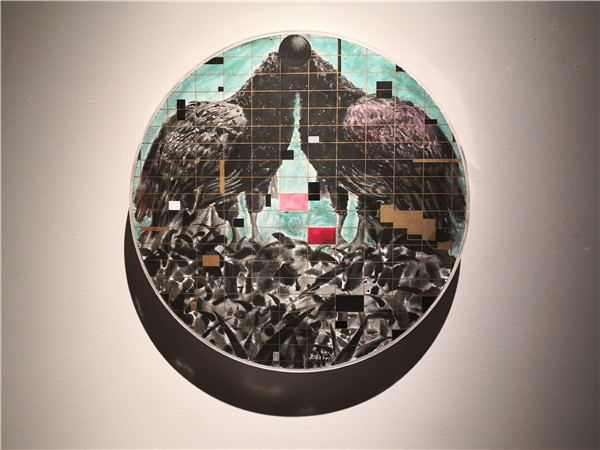 聯(lián)展現(xiàn)場三位作者向參觀者介紹創(chuàng)作經(jīng)歷及畫作意蘊。