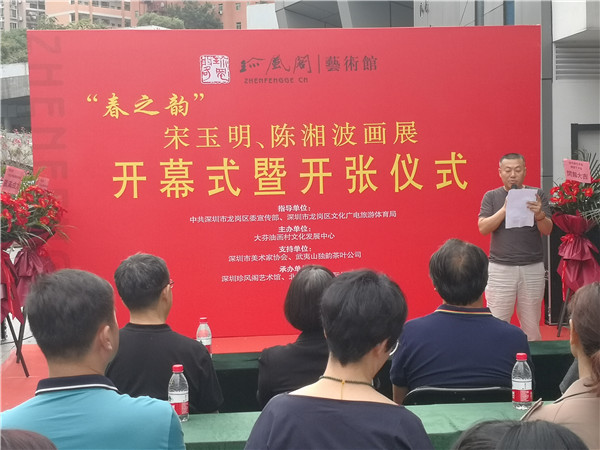 見圳客戶端?深圳新聞網(wǎng)2021年4月26日訊(記者 周錦春)《 春之韻-宋玉明陳湘波畫展》今日在龍崗區(qū)布吉街道大芬油畫村油畫路1號三樓珍風(fēng)閣畫廊隆重開幕,展期10日至5月6日結(jié)束,為期十天。據(jù)了解,是次畫展是在中共深圳市龍崗區(qū)委宣傳部、龍崗區(qū)文化廣電旅游體育局指導(dǎo)下,由大芬油畫村文化發(fā)展中心主辦,深圳珍風(fēng)閣藝術(shù)館、北京恒盛鼎國際拍賣公司共同承辦的,深圳市美術(shù)家協(xié)會、武夷山獨韻茶葉公司提供專業(yè)支持和贊助。畫展嘉賓和書畫愛好者近百人參加了開幕儀式。