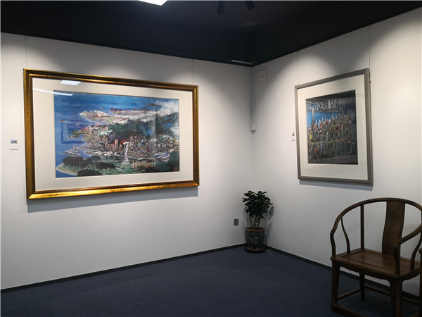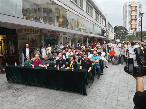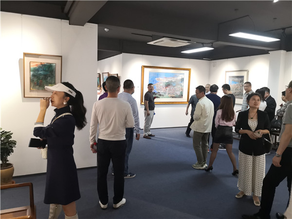 開幕儀式上,珍風(fēng)閣藝術(shù)館總經(jīng)理夏雨致辭,感謝一從嘉賓和書畫愛好者們的捧場。隨后,深圳市美術(shù)家協(xié)會名譽主席、深圳美術(shù)館原館長宋玉明先生致辭。他說,他來大芬村多次,一直關(guān)注大芬油畫村的發(fā)展和壯大,認(rèn)為大芬村為全國書畫走向市場開了先例。個人在此舉辦畫展是首次,感覺很有意義,是一次走向市場的實踐機會,值得珍惜和學(xué)習(xí),也歡迎大家批評指正。在現(xiàn)場,宋玉明老師還回答了主持人的提問。他謙虛地說,這次和陳湘波主席的聯(lián)展,有陳主席的花鳥和自己的城市山水,可以雅俗共賞。陳湘波老師因參加“兩會”未能出席開幕儀式,但在會后及時趕到現(xiàn)場,表達(dá)自己對來賓的感謝和自己對本次畫展組織的重視和支持。