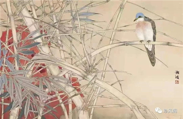 陳湘波先生的工筆花鳥畫,延伸著中國畫的本體方式,筆墨細(xì)密嚴(yán)整,設(shè)色淡雅空靈,以其深厚的造型基礎(chǔ)與超凡的色彩感受,形成了樸素、清澈、柔和、自然的個人畫風(fēng)。在具體創(chuàng)作中,他的作品既浸染出畫家的個性追求,又體現(xiàn)出強烈時代特點的新面貌。