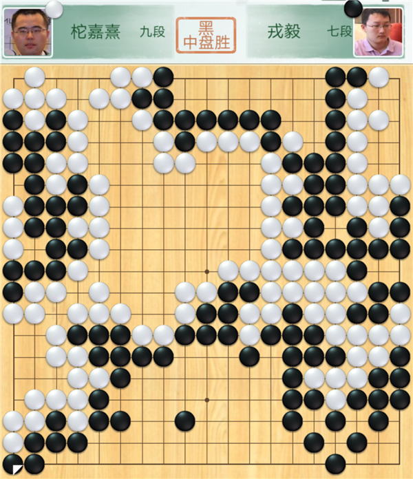 不過,接下來喜訊再次傳來:戎毅快棋執(zhí)黑贏了世界冠軍柁嘉熹。深圳龍華隊至此奠定勝局,至少是2:2主將勝,拿兩分。這一局,中盤時白棋在中央尋求作戰(zhàn),黑棋正面應(yīng)對則局面有利。實戰(zhàn)黑棋避戰(zhàn)搶占右邊,中央白棋先動手后白棋領(lǐng)先。但在之后官子爭奪戰(zhàn)中,白棋失誤頻頻,黑棋遂幸運小勝。