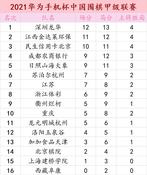 2021華為手機杯中國圍棋甲級聯(lián)賽第四輪深圳龍華3:1勝衢州爛柯
