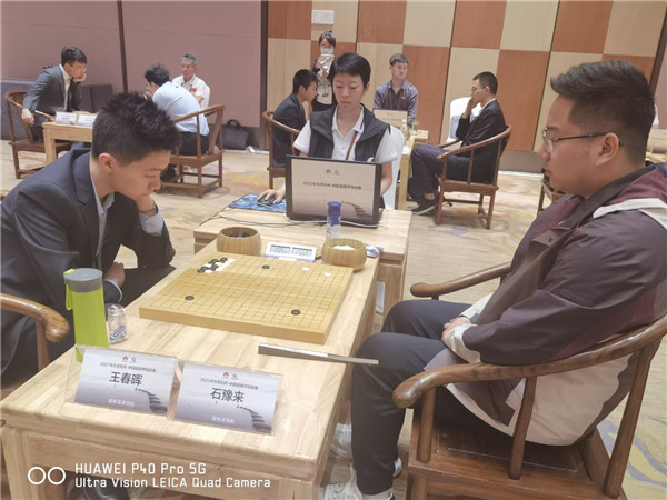 石豫來執(zhí)白對陣小將王春暉。雙方錯進錯出,最終黑棋小官子出現(xiàn)問題,白棋幸運1/4子獲勝。