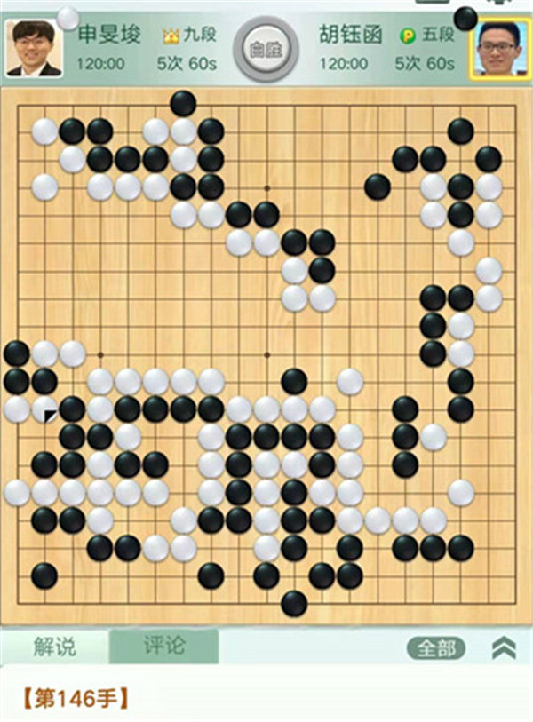 申旻俊主將執(zhí)白對陣胡鈺函。白棋發(fā)揮堪稱完美,優(yōu)勢不斷擴大,最終黑棋不顧自身薄弱在左下攪局,白棋應對正確黑棋崩潰。
