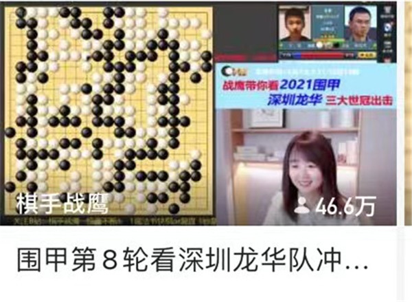 形勢大好,深圳龍華隊網(wǎng)上直播合作人,虎牙直播間圍棋知名主播戰(zhàn)鷹這里自然也是“門庭若市”,人數(shù)沖上46萬大關。賽后,石豫來到直播間作客,小帥哥自然受到熱捧!深圳龍華隊的后續(xù)戰(zhàn)況仍將在這里直播哦,關注戰(zhàn)鷹講棋,人美、棋強、口才好,是知名的圍棋主播。