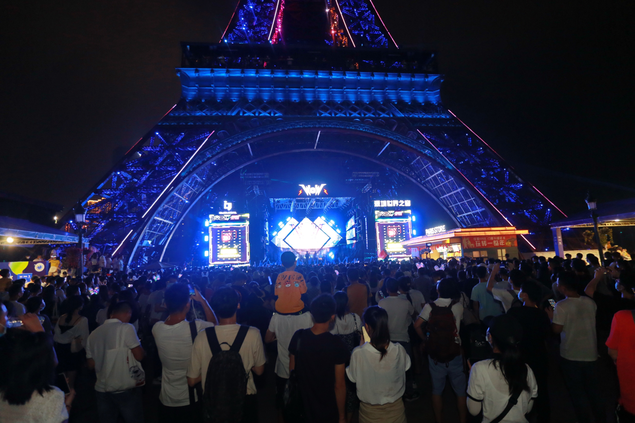 17:00—22:00鐵塔下,今年國(guó)慶最重磅節(jié)目超豪華陣容“WOW潮音嘉年華”閃亮登場(chǎng),本屆潮音嘉年華群星璀璨,新生代實(shí)力歌手趙磊、狂歡一路歌舞相隨,國(guó)內(nèi)dancerock先行軍“脆莓樂隊(duì)”一經(jīng)出場(chǎng)全場(chǎng)狂歡吶喊,粉絲們瘋狂打 call!直擊心靈的音樂,震撼的舞臺(tái)效果游客們紛紛表示“值回票價(jià)”。接下來(lái)的幾天重磅明星接連不斷: solo新星趙讓、霓虹花園、Hiphop少年組合BOY STORY、脆莓樂隊(duì)、LeeyOn李昂、對(duì)角巷樂隊(duì)、布偶樂隊(duì)、圳動(dòng)、黑玫瑰俱樂部、Spaceman太空人等演藝界先鋒人物將陸續(xù)登上舞臺(tái)傾情獻(xiàn)演,用充滿活力的青春姿態(tài)向未來(lái)致敬,現(xiàn)場(chǎng)游客沉浸其中,隨著歌手與音樂不斷嗨!環(huán)球舞臺(tái)同時(shí)上演大型音樂舞蹈史詩(shī)《盛世紀(jì)》;冰場(chǎng)廣場(chǎng)開啟魔幻光影秀《奇幻歐洲》。