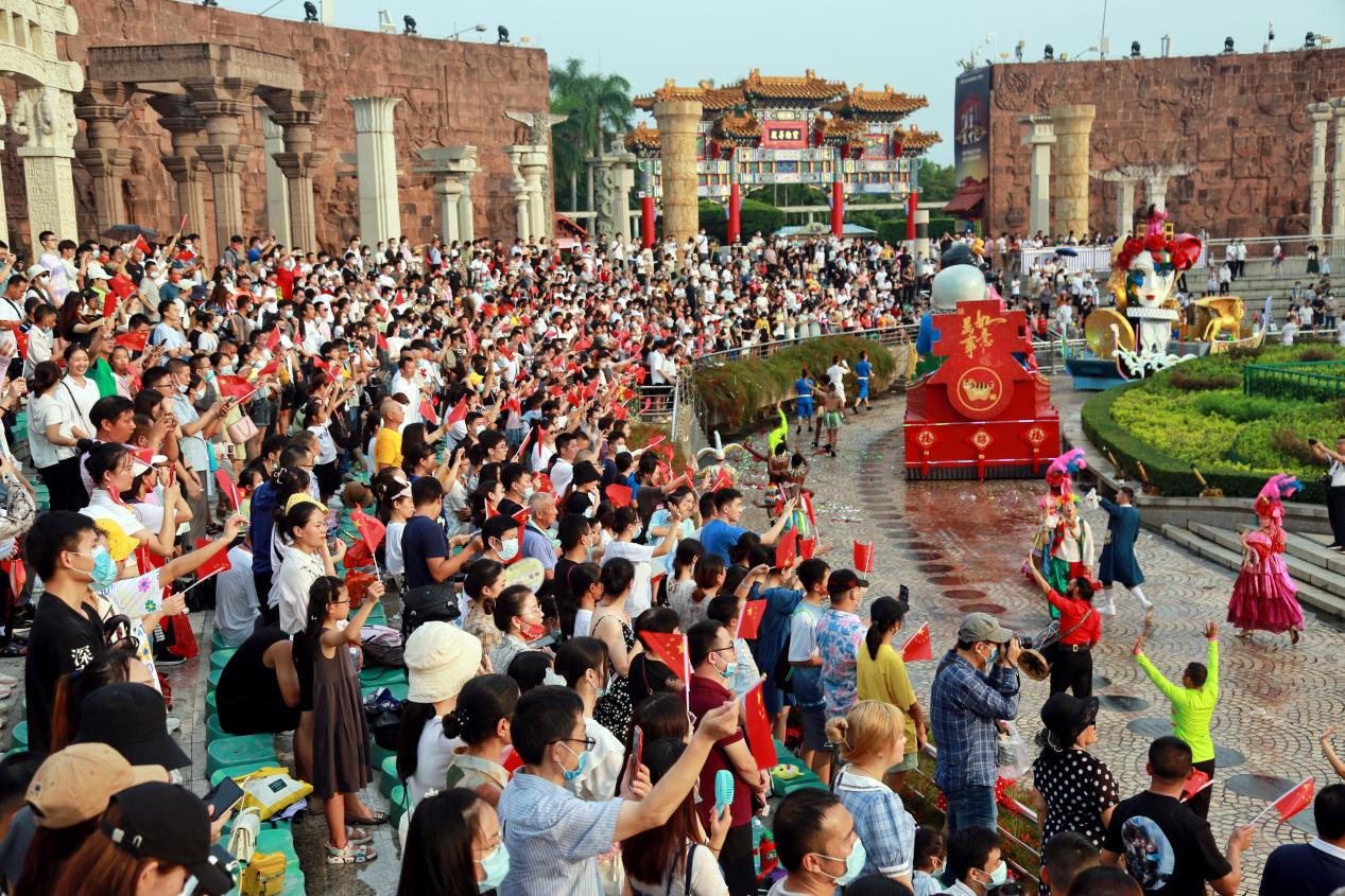 讀特客戶端·深圳新聞網(wǎng)2021年10月1日訊(記者 田志強(qiáng) 通訊員 陳嘉琳 黃海峰)今天,深圳世界之窗迎來(lái)第一波旅游小高峰。上午10:00整,世界之窗前廣場(chǎng)舉行了莊嚴(yán)的升國(guó)旗儀式,現(xiàn)場(chǎng)游客齊唱國(guó)歌,高亢嘹亮的歌聲響徹深南大道,激動(dòng)人心。閘口處,俄羅斯歡樂家庭劇、異域風(fēng)情迎賓禮以國(guó)際歡樂氛圍喜迎八方來(lái)客。