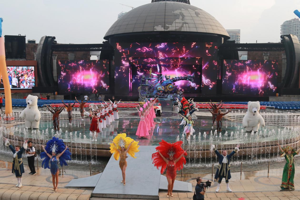 12點(diǎn)主環(huán)道世界風(fēng)情嘉年華,儀仗方隊(duì)、美女電車、紅磨坊風(fēng)情隊(duì)等充滿節(jié)日特色和國(guó)際風(fēng)格的巡游方陣,帶領(lǐng)游客一路歌舞相隨,歡樂唱和。