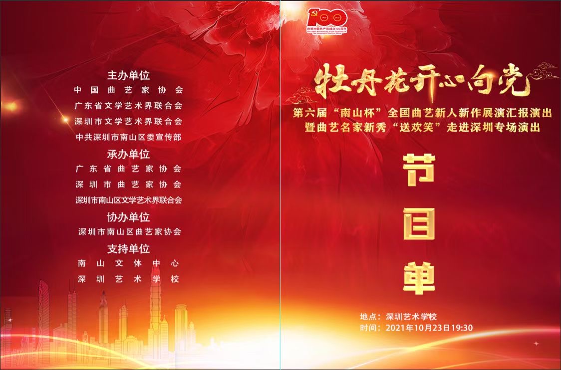讀特客戶端·深圳新聞網(wǎng)2021年10月24日訊(記者 張俊達)23日,深圳曲藝界迎來大日子。“牡丹花開心向黨”——第六屆“南山杯”全國曲藝新人新作展演匯報演出暨曲藝名家新秀“送歡笑”走進深圳專場演出在深圳南山藝術(shù)學校舉行。