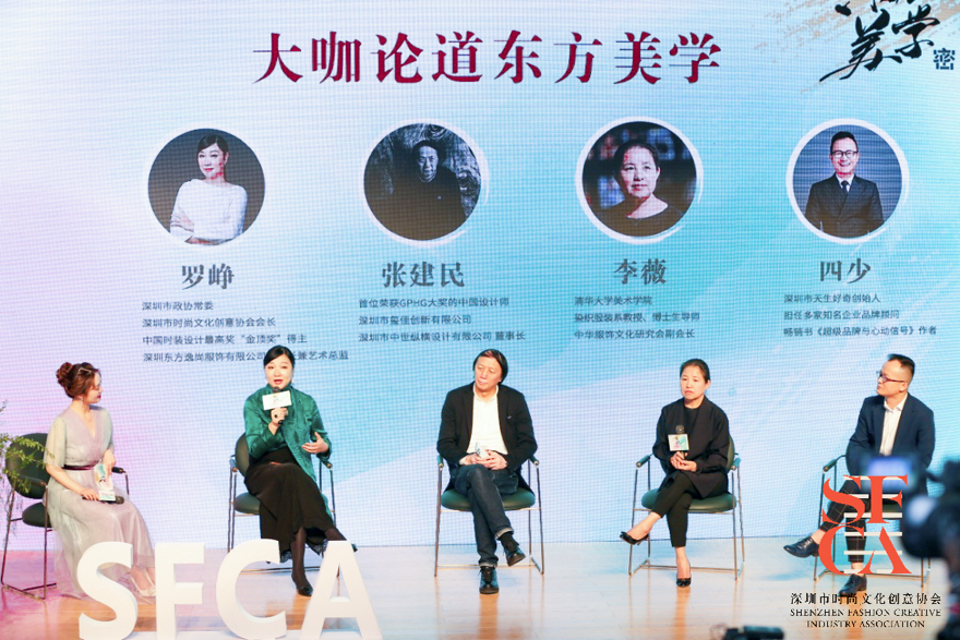 在大咖論道環(huán)節(jié),羅崢、張建民、李薇以及近年來(lái)暢銷(xiāo)書(shū)《超級(jí)品牌與心動(dòng)信號(hào)》作者四少共同圍繞東方美學(xué)里藏著中國(guó)人的哪些精神與美學(xué)密碼,如何讓美學(xué)與普通人的生活產(chǎn)生關(guān)聯(lián),東方美學(xué)如何才能引領(lǐng)世界新時(shí)尚等話(huà)題展開(kāi)討論。