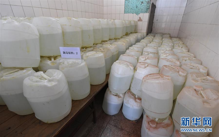 公安機(jī)關(guān)繳獲的制毒原料(4月18日攝)。