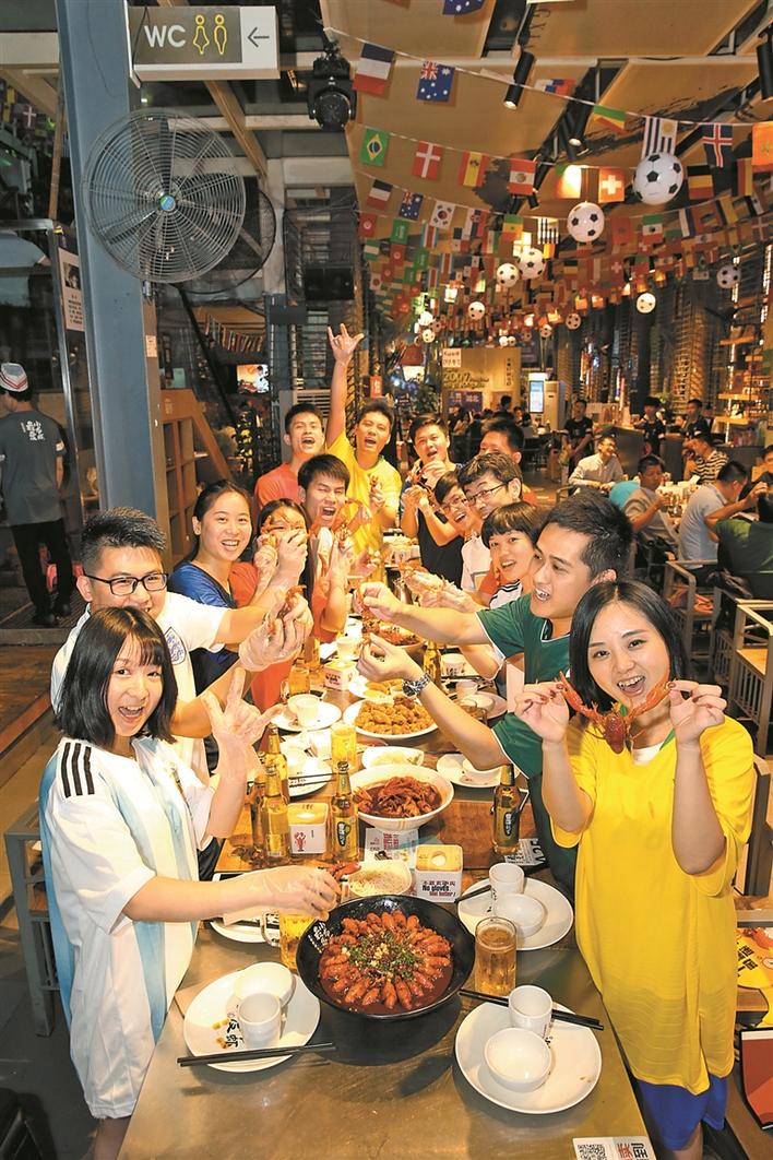 但這次世界杯期間,許女士找到了一個(gè)好去處:“看球其實(shí)不重要,重要的是大家聚在一起,但口味一定要找大家都能接受的,所以挑來(lái)挑去最后選擇了龍巢?!痹谧蛲淼凝埑驳陜?nèi),一整盤的蛋黃味小龍蝦被許女士吃個(gè)精光:“這是吃得最暢快的一次,整個(gè)氛圍也很到位,接下來(lái)的比賽就扎根在這里了?!?/p>