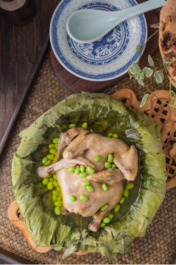 “池塘十里盡荷塘,姊妹朝來采摘忙,不摘荷花摘荷葉,飯包荷葉比花香。”清末民初的這首詞,表明了人們對用荷葉制肴的喜好。選用肉質(zhì)細(xì)嫩的仔雞,以荷葉包裹蒸熟,松軟適口,呈現(xiàn)原汁原味的鮮美,融合荷葉的幽幽清香,細(xì)細(xì)品味,仿佛回到夢里水鄉(xiāng)。