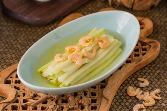 兩千多年前的《詩經(jīng)》即記有“彼降之坡,有蒲有荷”,水生的蒲菜潔白如玉、味美鮮嫩,采摘卻是費(fèi)時費(fèi)力,得來不易。精選淮安特產(chǎn)蒲菜,配以上等金鉤蝦米同烹,細(xì)嫩爽口,湯汁清鮮,清香四溢,似有嫩筍之味,為兩淮地域時令名肴。