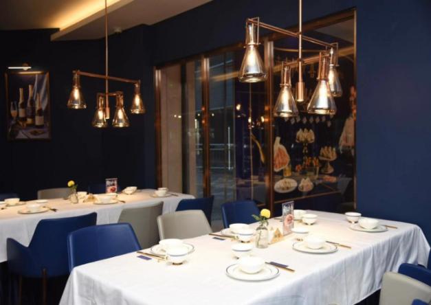 密室的大門,區(qū)隔開的完全是兩種不同的風格。實驗室風格VS LOFT風,密室玩的是神秘的科學實驗室氛圍,大堂則是完全敞亮通透的空間,整體以大叔紳士藍、玫瑰金為主色調,線條利落的天花板吊頂,吊燈暖暖的光線投射在擺放講究的餐具上,浪漫又小資,再搭配大理石紋水泥地磚、木紋墻藝等,讓整個空間保持和諧統(tǒng)一的氛圍,又展現(xiàn)出豐富的層次感。廚房直接采用明檔的空間設計,衛(wèi)生情況一目了然,除了大堂,還設有特色VIP室和半透明宴會廳,適合有重要會談和生日宴會需求的朋友。
