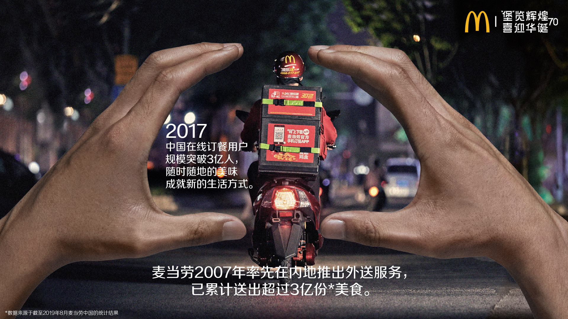 外送生活,方便美味:2017年,中國在線訂餐用戶突破3億人,外賣已成為一種生活方式。麥當勞中國于2007年率先推出外送服務。截至2019年8月,麥當勞累計送出超過三億份餐點,讓消費者在不同場景下享受高品質(zhì)的食品。(常軍平)