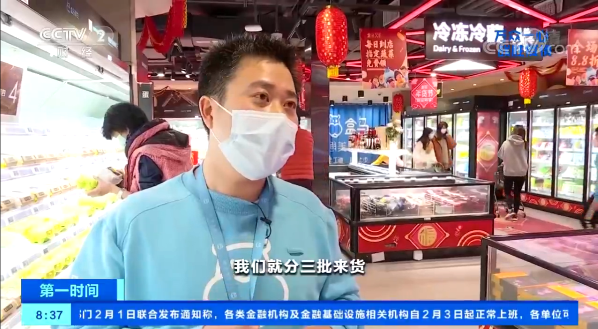 在政府持續(xù)保障貨源供應(yīng)的背景下,鐘天平所在的超市加大了批發(fā)市場進(jìn)貨的頻次,到了初六,供應(yīng)狀況已經(jīng)恢復(fù)正常。“像蔬菜的銷量是平常十倍左右,分三批來貨,我們每天要補(bǔ)充三次貨架,早上一次、中午一次、晚上來一次?!?/p>