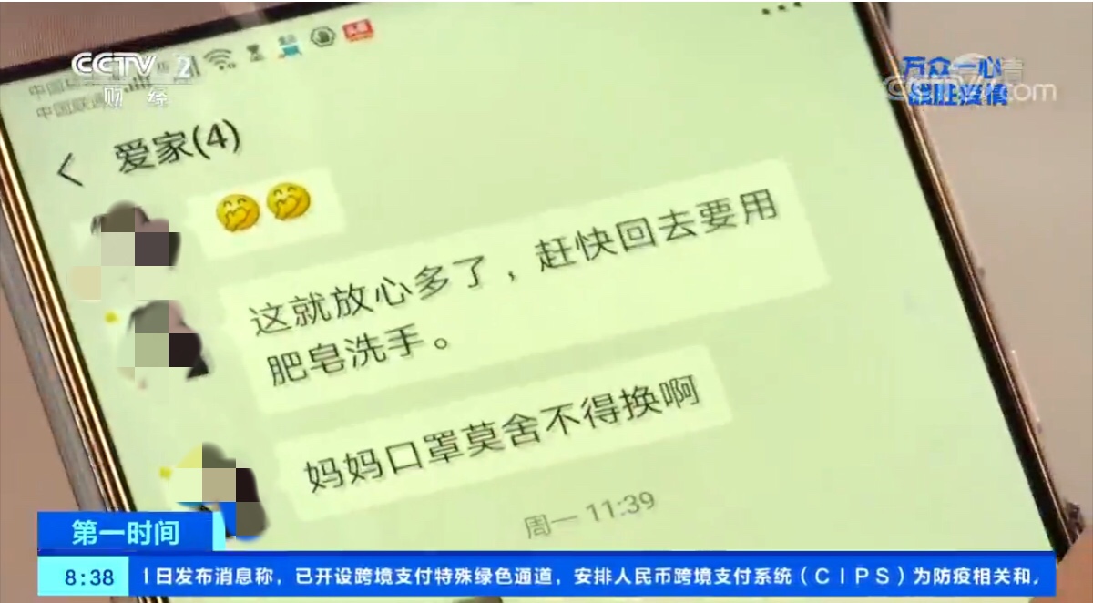 除了緊張忙碌的工作,鐘天平更擔(dān)憂1000公里之外的家人。他的岳父母生活在湖北黃岡市下轄的浠水縣。在鐘天平的微信里有一個(gè)叫愛家的群,里面就是岳父岳母和他兩口子,互相囑咐戴好口罩、注意安全,成了這個(gè)春節(jié)最重要的祝福語。
