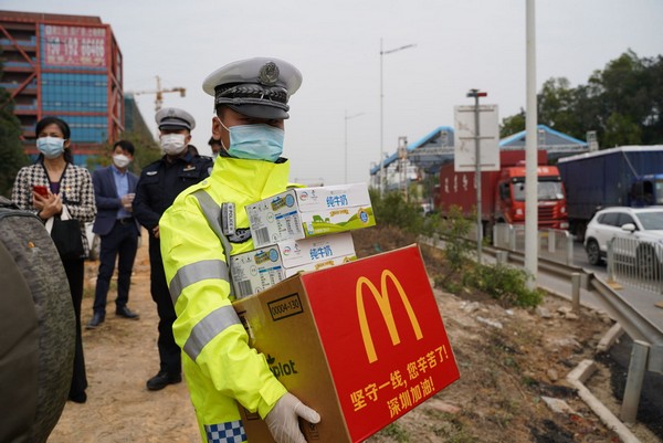 你們在一線戰(zhàn)疫,我們來為你補給!隨后,市關(guān)愛辦攜手伊利集團(tuán)、麥當(dāng)勞先后前往光明羌下公安檢查站、寶安區(qū)松安防疫檢查點,為正在一線忙碌的工作人員,送上愛心牛奶與熱乎乎的愛心午餐。“你們辛苦了”、“繼續(xù)加油”……每發(fā)放一次牛奶與午餐,工作人員都不忘了戰(zhàn)疫者們致敬致謝。
