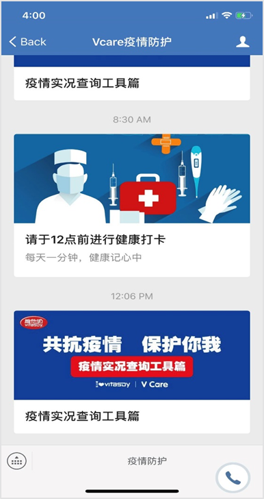 在疫情防控部分,維他奶準(zhǔn)備充足,全力保障每一位員工的健康和安全。首先,利用企業(yè)微信,維他奶建立每日健康監(jiān)控機(jī)制,持續(xù)追蹤全體員工健康狀況。其次,公司利用微信小視頻等媒體工具制作防控指引和要求,讓員工掌握防控知識(shí)和防控要求。除了必不可少的佩戴口罩、測(cè)量體溫、健康問(wèn)詢(xún)登記和辦公場(chǎng)所和生產(chǎn)區(qū)域的消毒工作外,維他奶還建立全方位覆蓋的防控組織和應(yīng)急預(yù)案,設(shè)立疫情防控專(zhuān)員,鼓勵(lì)職能部門(mén)的員工使用在線會(huì)議等溝通工具以減少近距離接觸,實(shí)現(xiàn)工作會(huì)議和防疫安全的兩不誤。