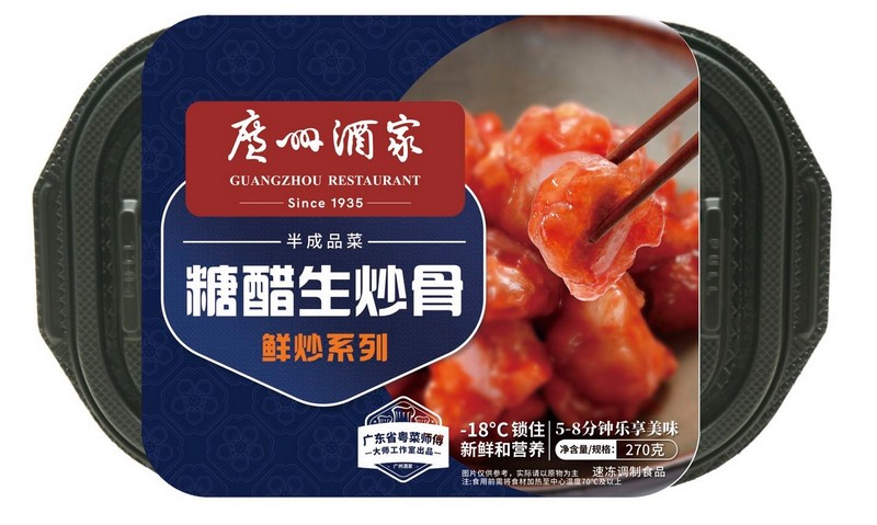 蘇鴻飛介紹,“大廚駕到”系列菜由廣州酒家粵菜師傅大師工作室出品,工作室集中了集團最頂級的廚師團隊?;洸藥煾低瓿闪司茦钦信撇俗顝?fù)雜的前端處理環(huán)節(jié),包括食材的處理、風(fēng)味的調(diào)和,這是“酒樓風(fēng)味”的靈魂所在;加之集團強大的生產(chǎn)供應(yīng)鏈以及食品加工優(yōu)勢,保證了半成品菜系的品質(zhì)安全與穩(wěn)定,這是它走入千家萬戶的前提基礎(chǔ)。
