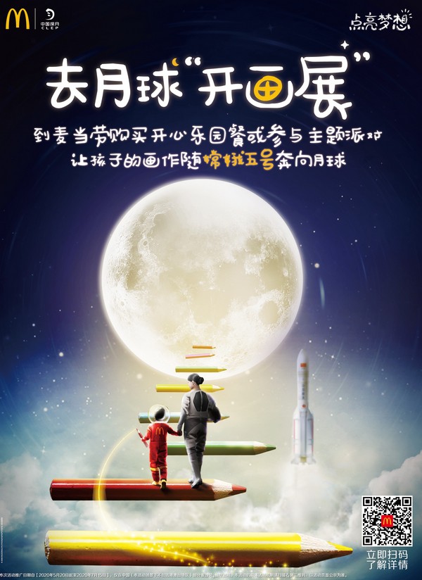 麥當(dāng)勞中國與“中國探月”合作,讓兒童夢想畫作隨“嫦娥五號(hào)”奔向月球。