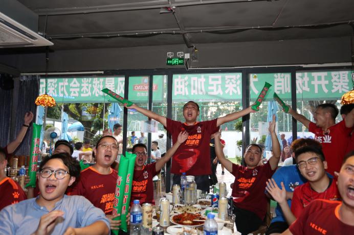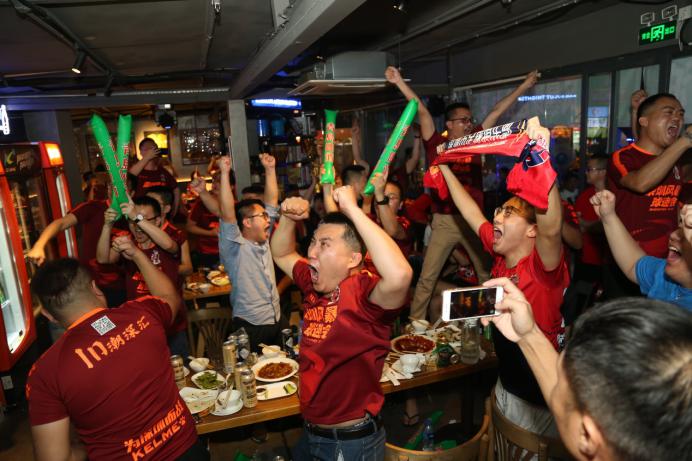 7月26日,青島啤酒在深圳青島啤酒球迷餐廳——開(kāi)場(chǎng)哨餐廳,為深圳隊(duì)球迷舉辦歡聚盛宴——觀賽派對(duì)?,F(xiàn)場(chǎng)榮獲過(guò)國(guó)內(nèi)外大獎(jiǎng)的各款青島啤酒、各地特色美食,琳瑯滿目。派對(duì)上的酒王大賽、瓶蓋投票、色盅大賽等游戲?yàn)楝F(xiàn)場(chǎng)注入更多快樂(lè)元素,伴隨比賽的高潮迭起,現(xiàn)場(chǎng)超燃!