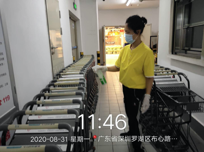 8月31日,深圳盒馬水貝店,工作人員對(duì)購(gòu)物環(huán)境進(jìn)行消殺。