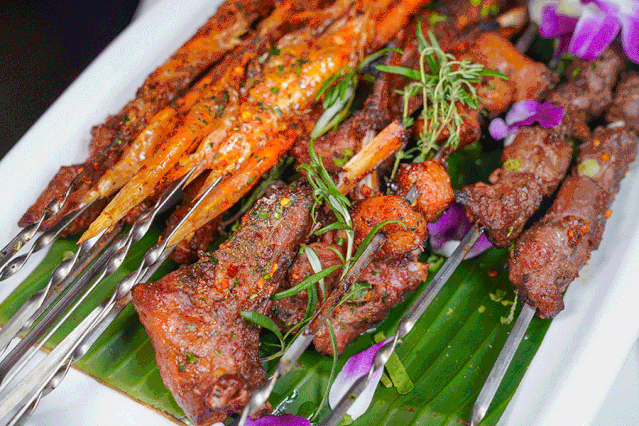 把蘇格蘭生蠔+波士頓龍蝦加入晚餐菜單,慢熬10h的海參鮑魚每人一份(晚餐),現(xiàn)做香草烤羊扒吮指香,13款海鮮刺身一次滿足吃貨心,還有現(xiàn)點(diǎn)現(xiàn)做BBQ海陸云集刷過癮......